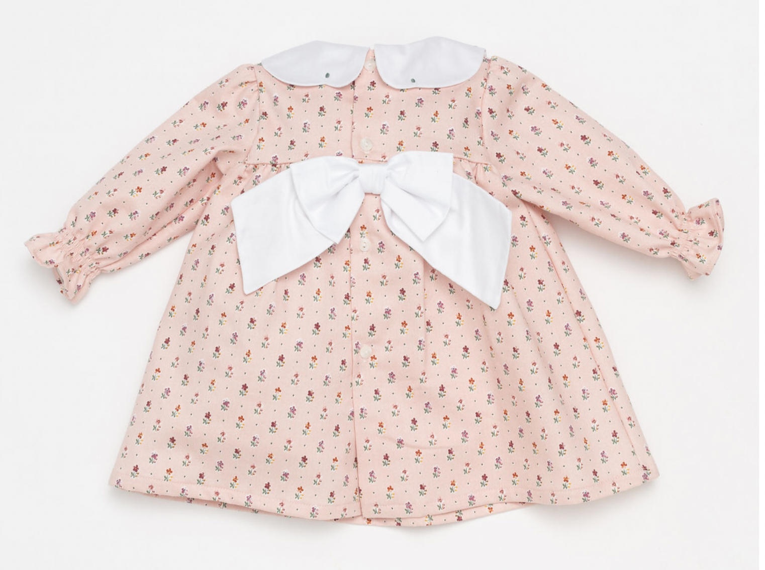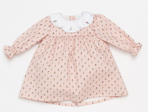 Deolinda venice dress with flower patter  and white collar and white bow on the back fully lined