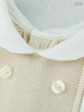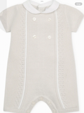 Introducing our Java romper, a new addition to our stone coloured garments. Similar to our blue James romper, Java is a great unisex option. It has the same textured knit sides, contrasting white stitch style panel and decorative buttons, but this time with a sweet rounded white collar. The same buttons are also on the reverse of the garment and leg opening. A fabulous addition to any baby's wardrobe.