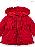Little A Girls Red Heart Embroidered Bow Jacket With Frilled Hood - KAIA
